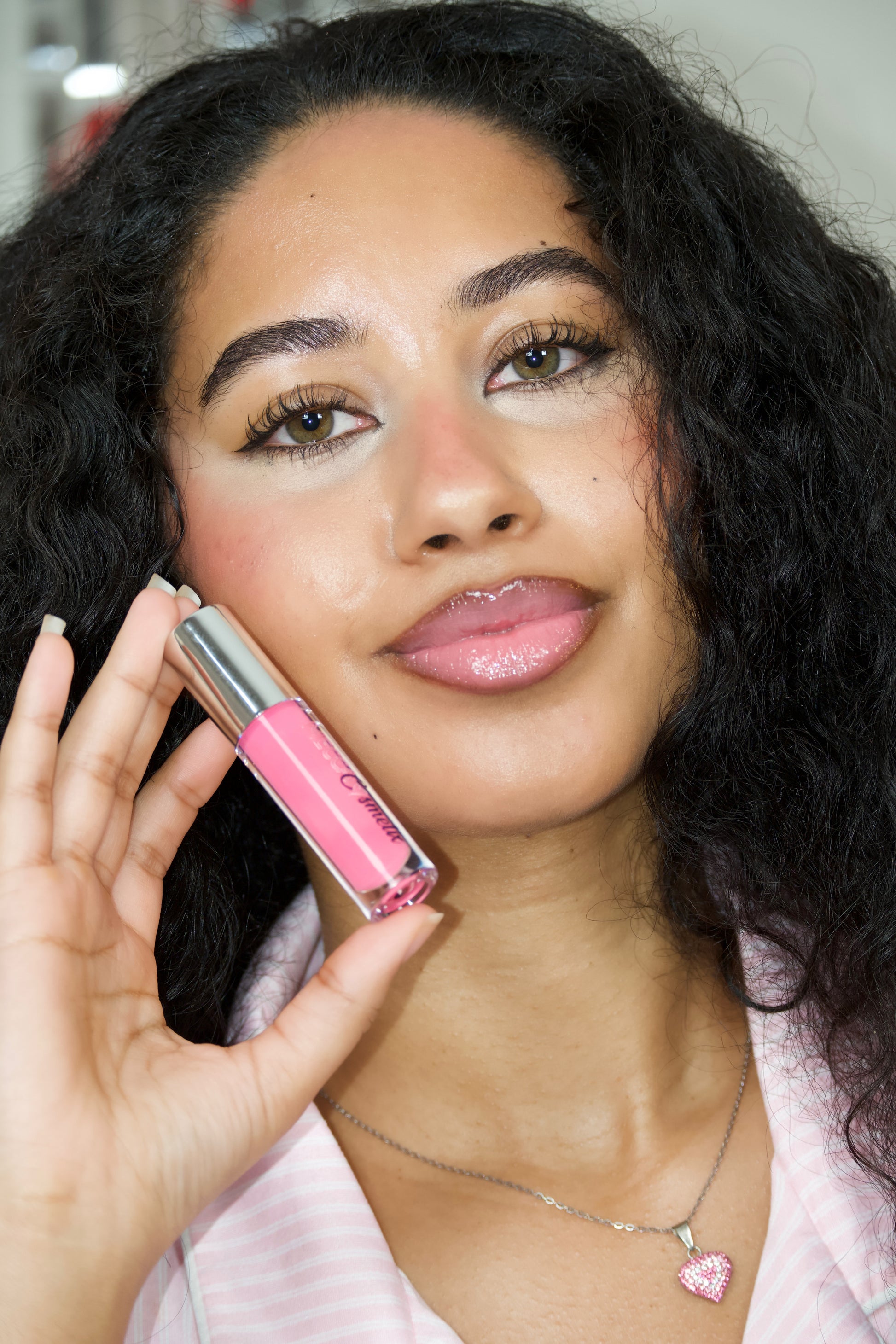 A juicy bright pink gloss with a high shine finish. Designed to be worn with a lip liner to create a nude pink pop at the center of the lips. Universally flattering and endlessly wearable.